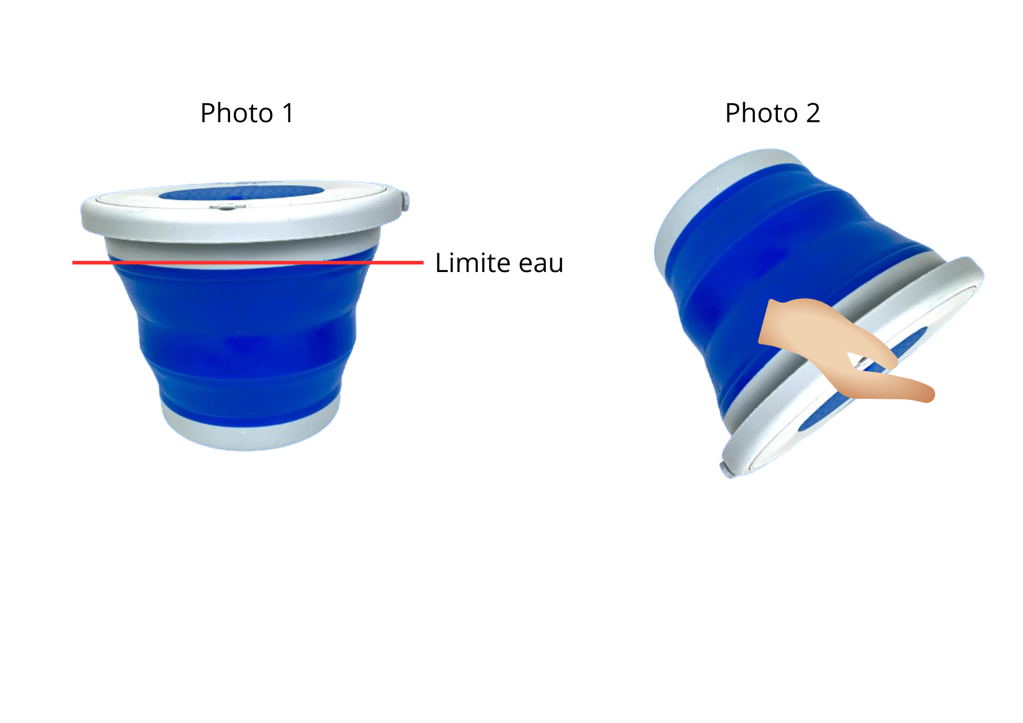 1) Remplir le sceau pliable jusqu’à la partie grise (photo 1)